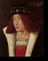 | Painting of James II is in the Scottish National Portrait Gallery. Key events: 1437 James I murdred by Sir Robert Graham 1440 The "Black Dinner" 1445 Joan Beaufort died 1449 July 2nd, Livingston was executed 1449 July 3rd, married Mary of Gueldres 1450 Earl of Douglas sent to Rome 1451 University of Glasgow founded 1452 February 22nd, Black Douglas killed by the King 1455 May 22nd, Battle of Albans - War of Roses begins 1455 Douglas estates forfeited 1460 August 3rd, Died during the siege of Castle Roxburgh James was born on October 16, 1430 at Holyrood. After his father was murdered at Perth, James became James II. He was reported to have a birth mark covering much of his face. The mark would flare with the King's temper, thus the term Fiery Face. During a dinner hosted by the Earl of Crichton, a black boar's head was brought in on a platter signifying death. Two young guests of the King, the Earl and Earl presumptive of Douglas were then quickly slain in front of the kings. This is known as the "Black Dinner." Illegitimate: James, of Sticks & Ballechin | |||||||||||||||
