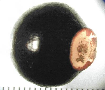 Fruit: Large somewhat woody stipitate 3-lobed smoothish pod, pale-green, often suffused with red, 3.5-5 cm thick; seeds spherical, 1-1.5 cm in diameter, dark-brown to blackish, poisonous